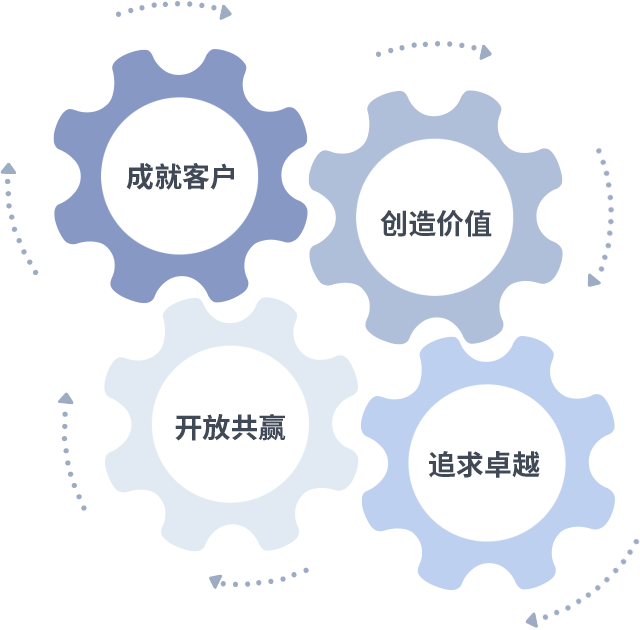 成就客户是一切决策的出发点,创造价值是衡量所有工作的标准,追求卓越是ag凯发做事做人的态度,开放共赢是ag凯发的格局也是最终的结果。价值观的齿轮环环相扣,推动着组织里的每个人不断向前。